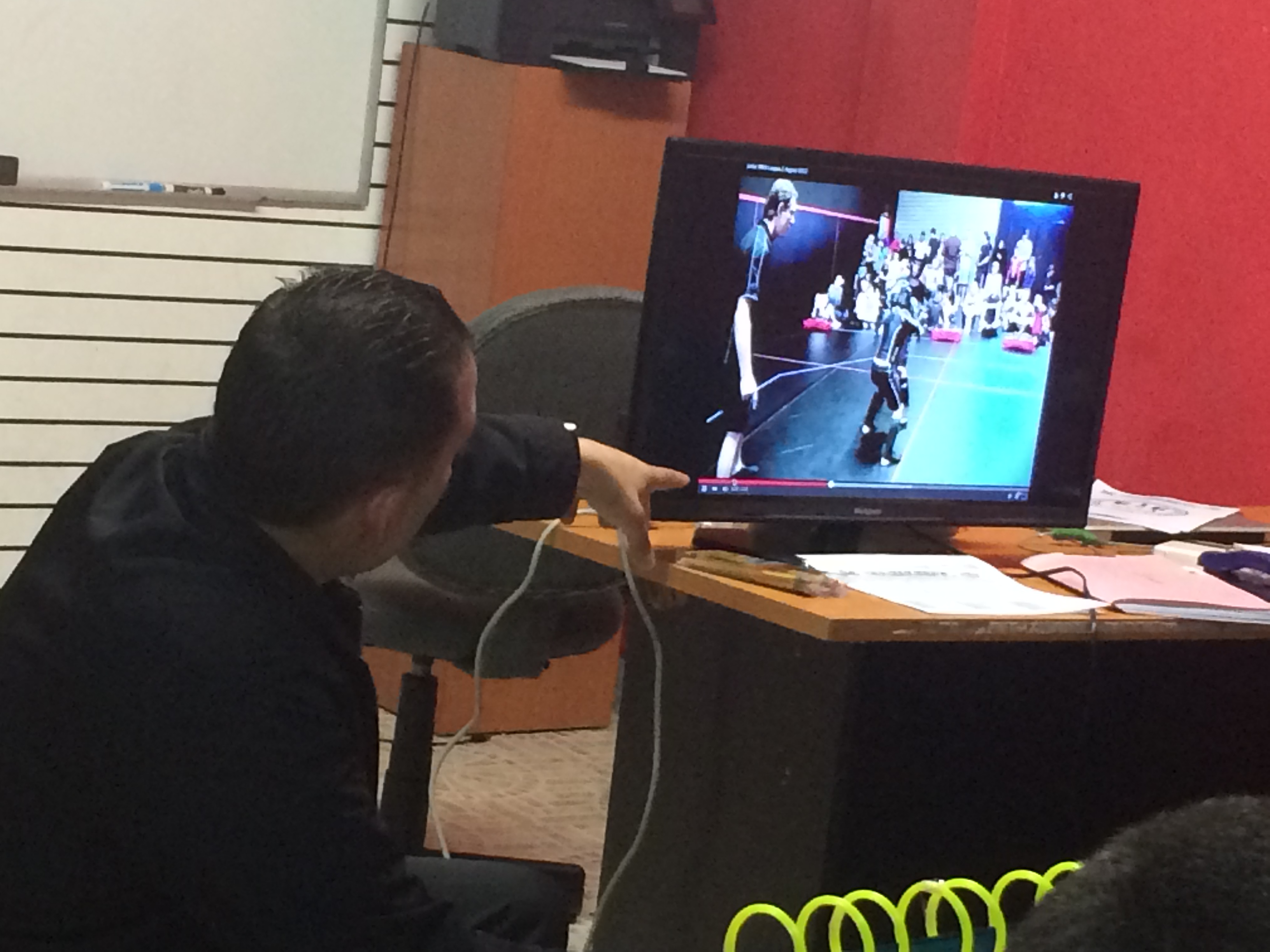4. Los entrenadores deberán abandonar el área de combate al sonar el silbato que indica los diez (10) segundos que faltan para dar comienzo al siguiente asalto.